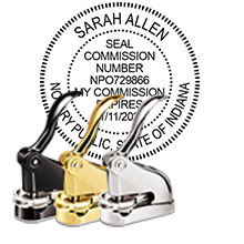 FAST & FREE Shipping on Indiana Notary Seals. Order your Indiana Notary Public Seal Today and Save, ships out the Next Business Day. Create a beautiful, raised IN notary seal impression. Choose from our Indiana Notary Pocket Seal or Desk Embossing IN Notary Seal. Use either of these seals with your IN notary ink stamp for added elegance. Excellent, reliable IN Notary Seal. The finest Indiana Notary embosser available at our Indiana Notary Store.